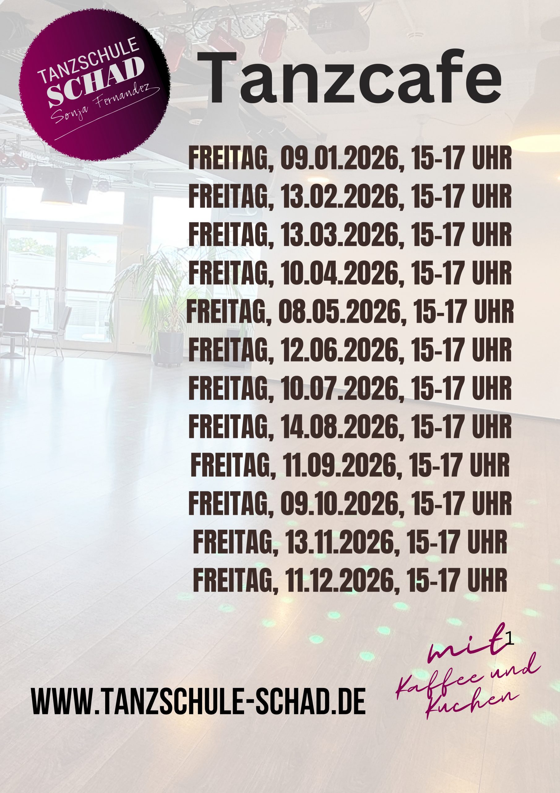 Immer am zweiten Freitag im Monat findet das Tanzcafe von 15.00-17.00 Uhr statt.